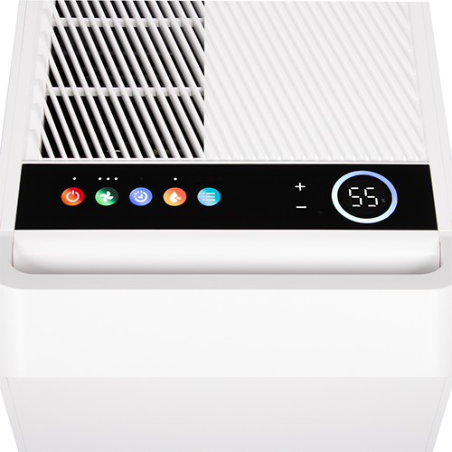 Осушитель выполнен в современном корпусе из высокопрочного пластика. Индикаторы работы, LED-дисплей и органы управления расположены на верхней панели.