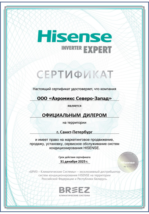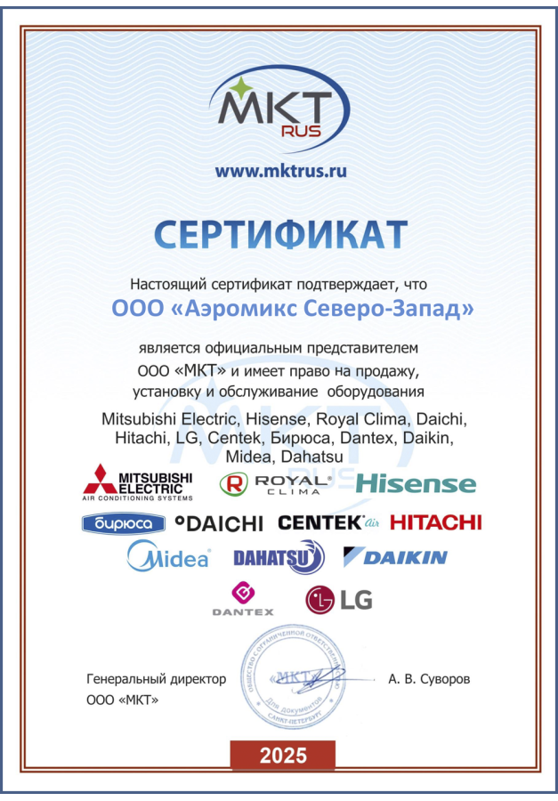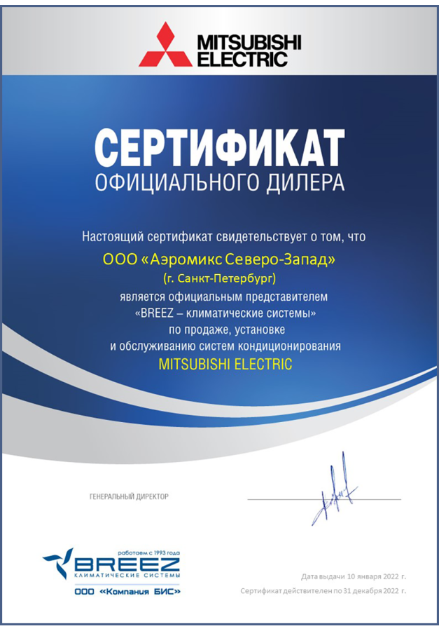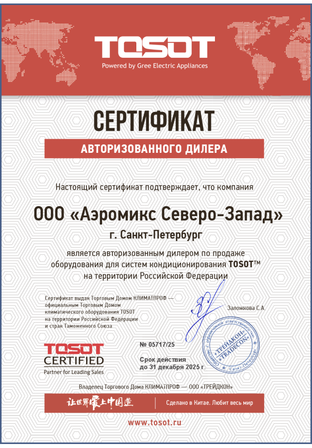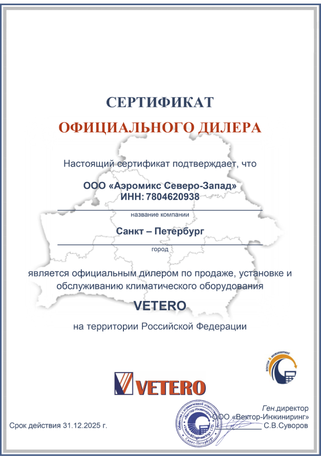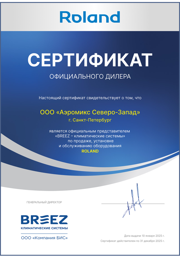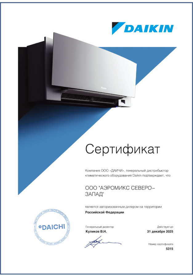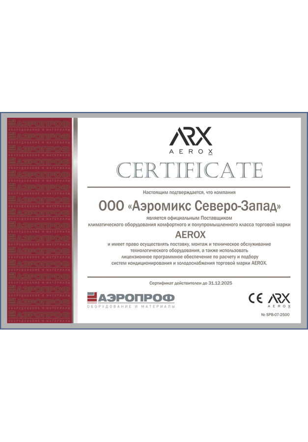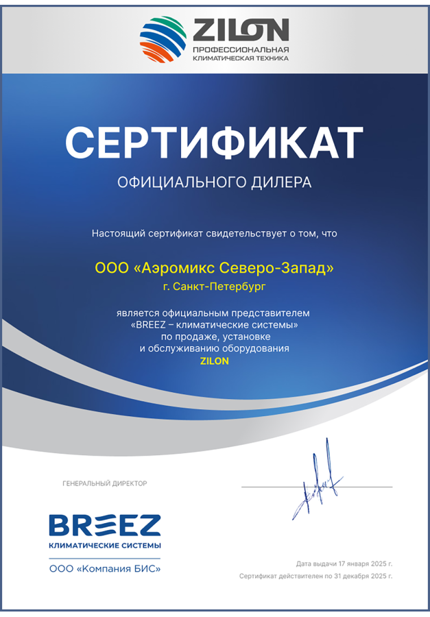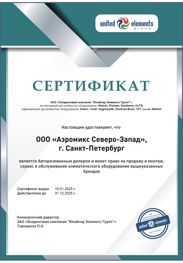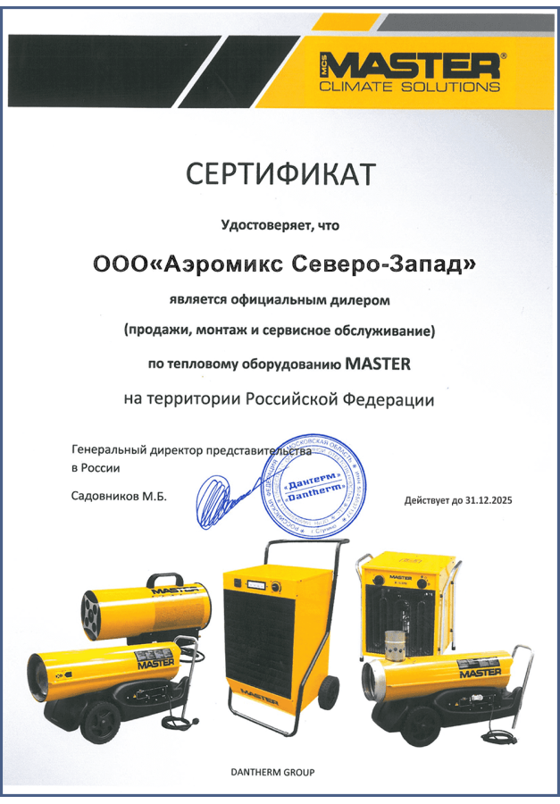 ДИЛЕРСКИЕ СЕРТИФИКАТЫ ООО "Аэромикс Северо-Запад"