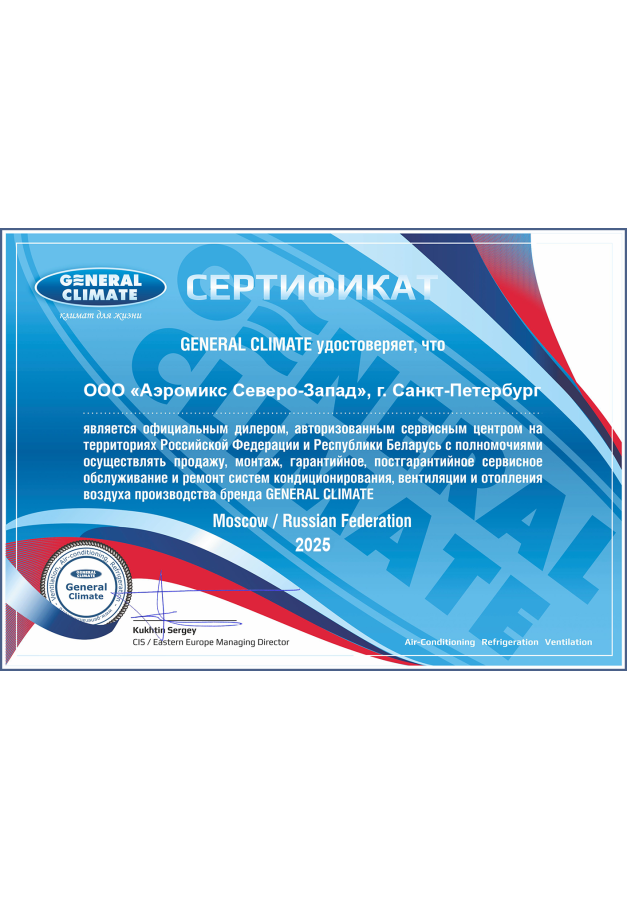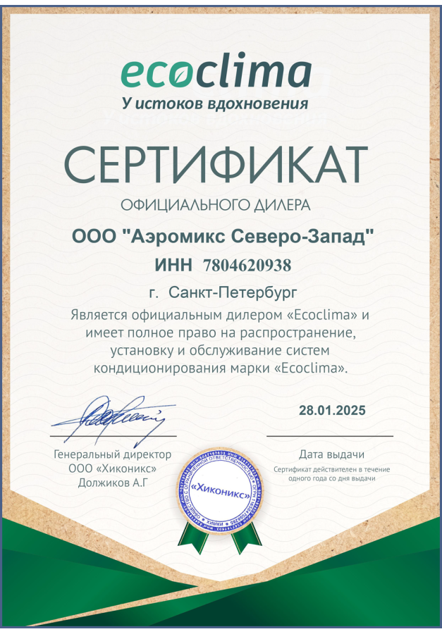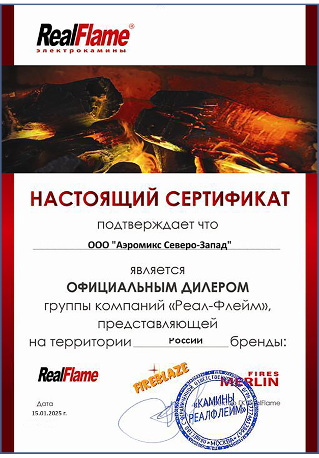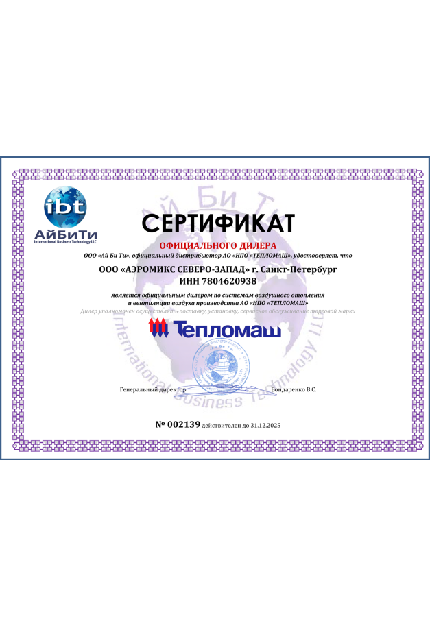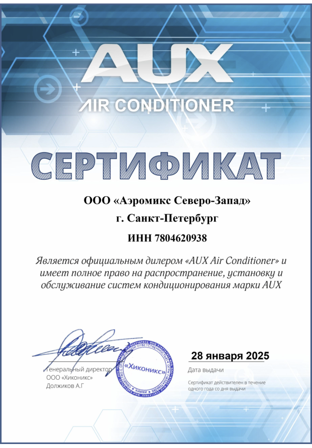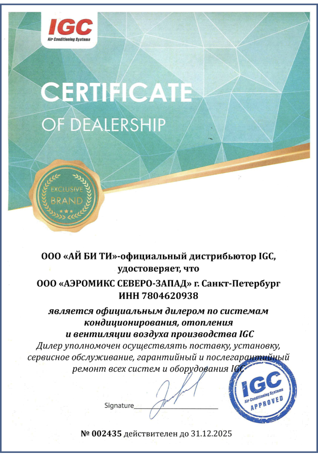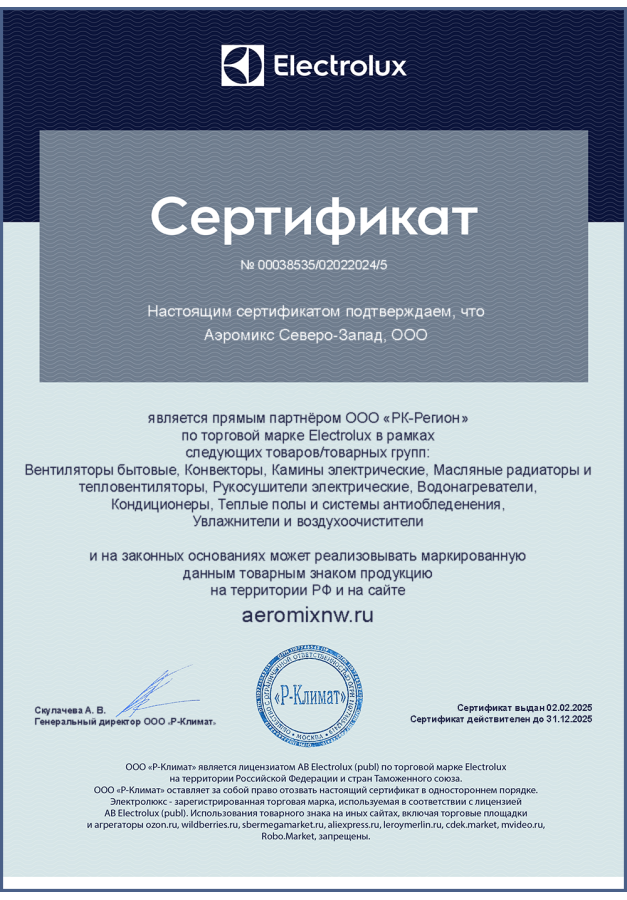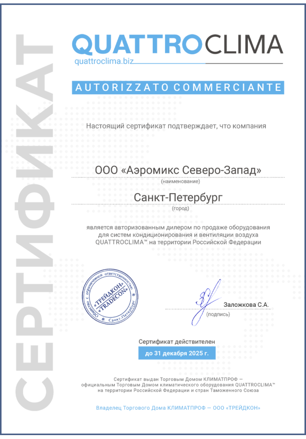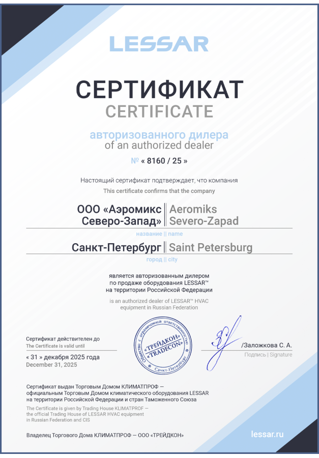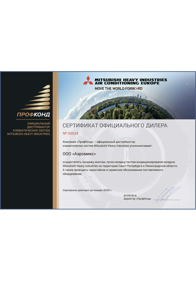 ДИЛЕРСКИЕ СЕРТИФИКАТЫ ООО "Аэромикс Северо-Запад"