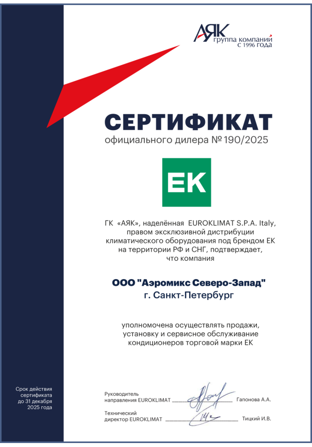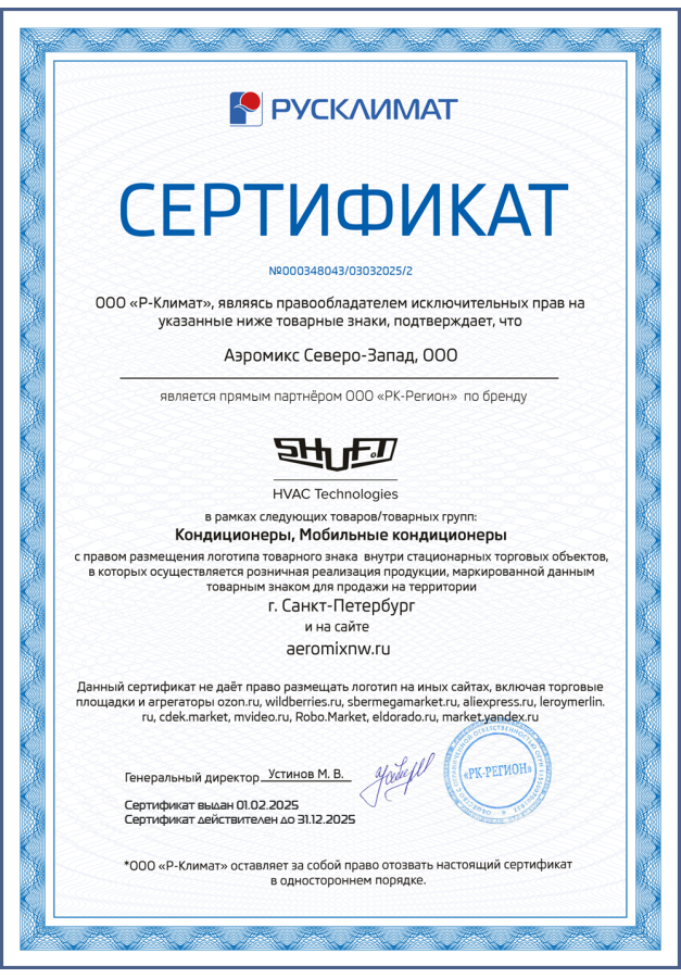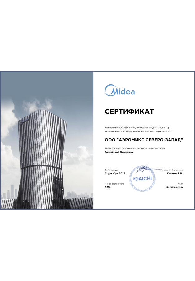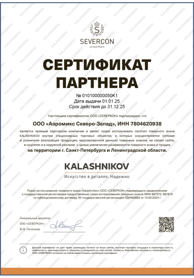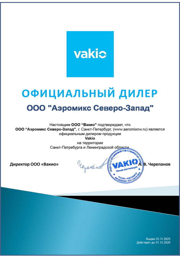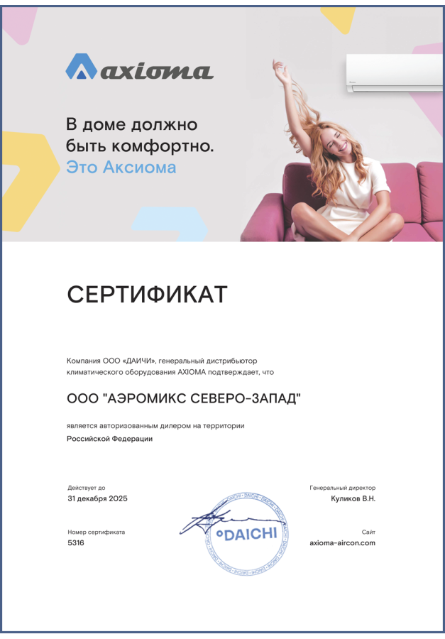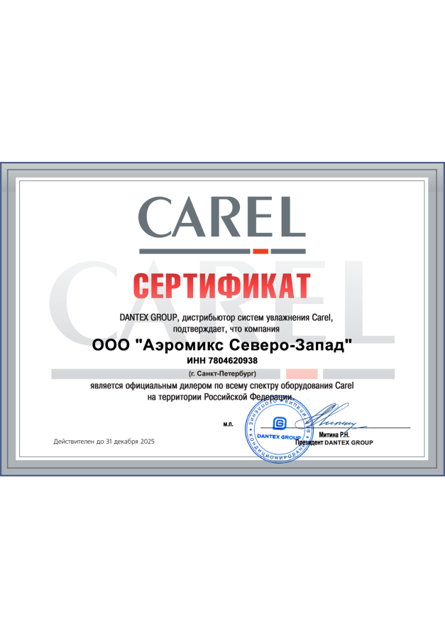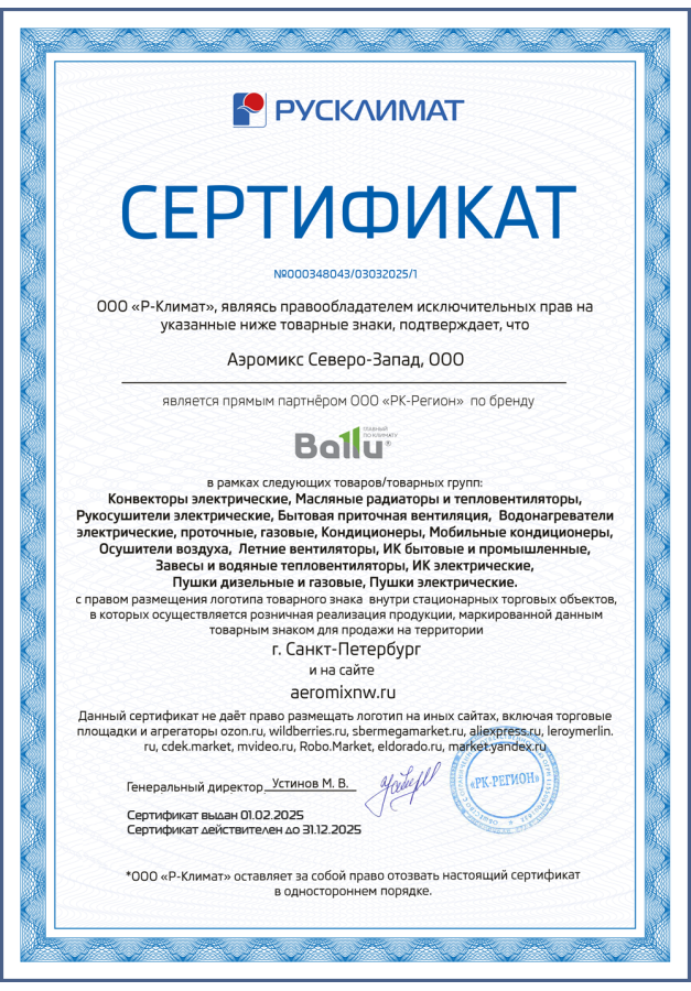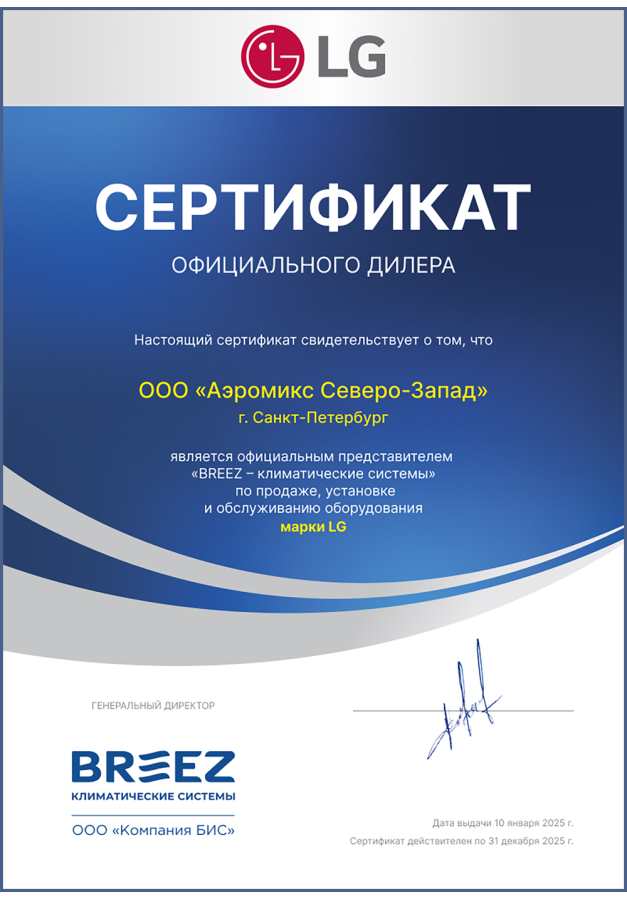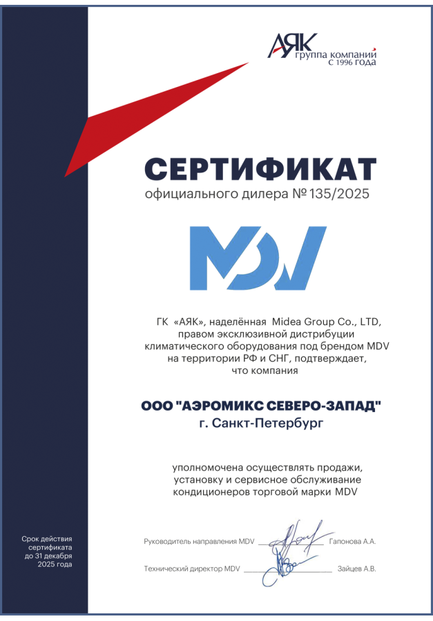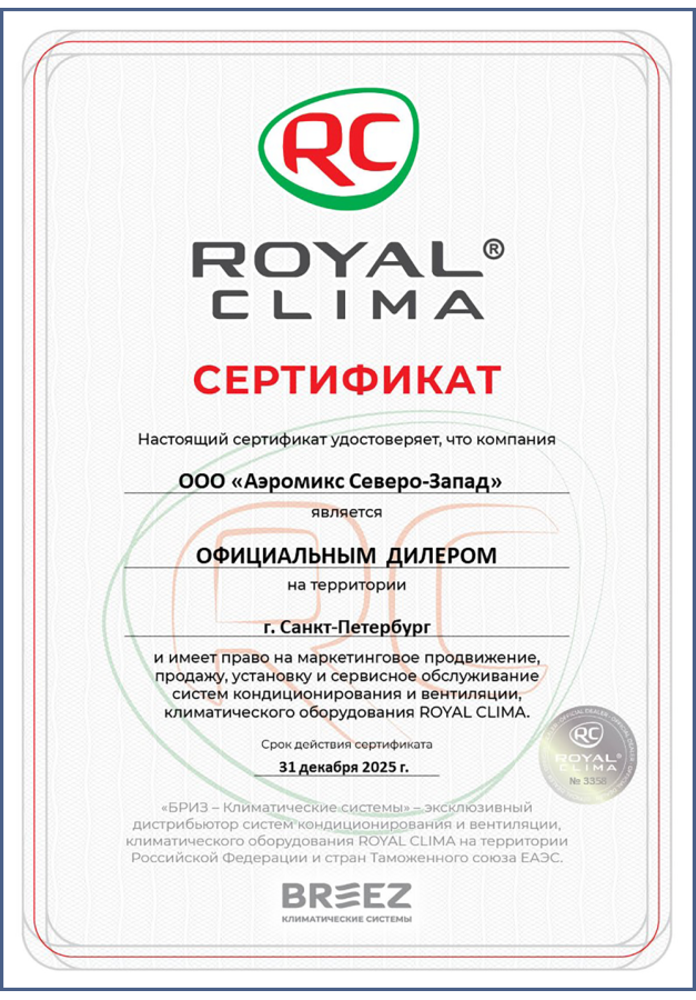 ДИЛЕРСКИЕ СЕРТИФИКАТЫ ООО "Аэромикс Северо-Запад"