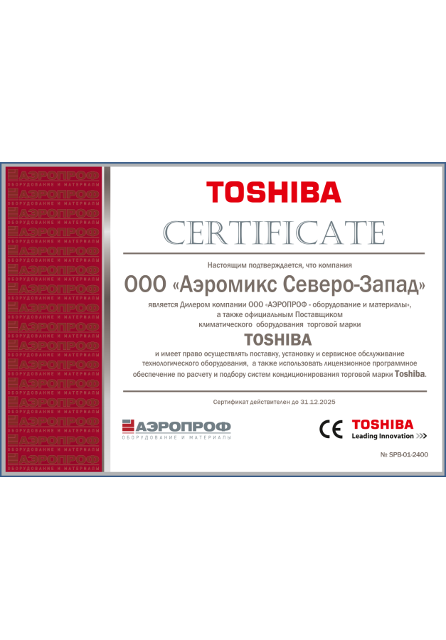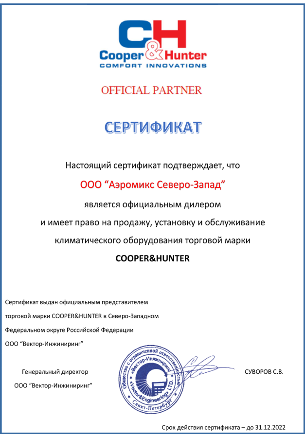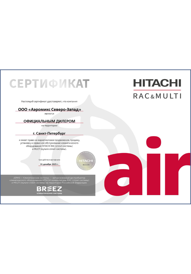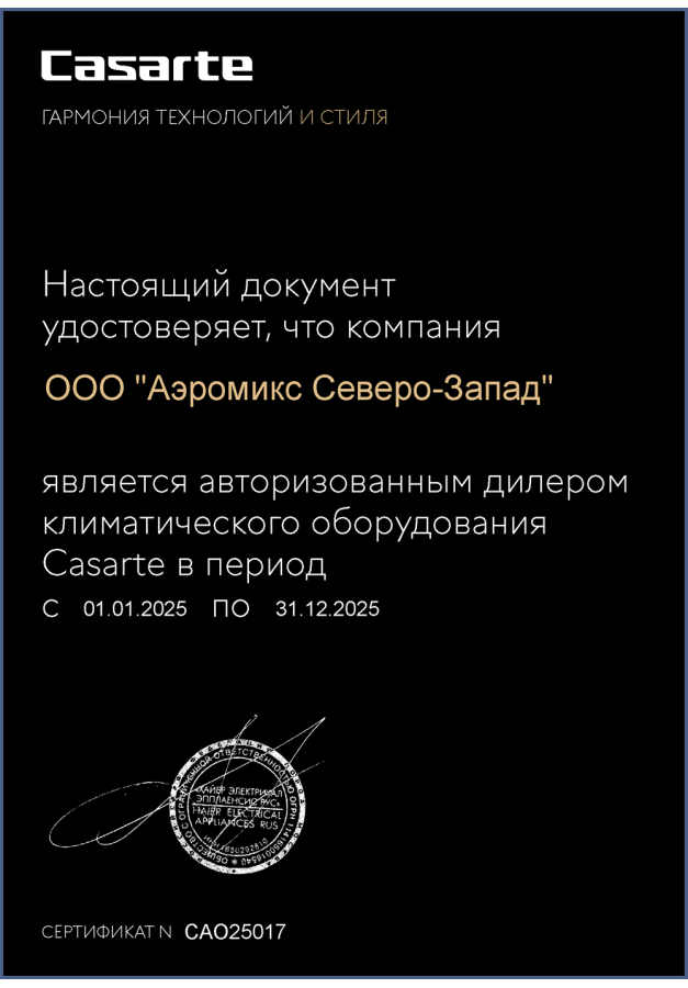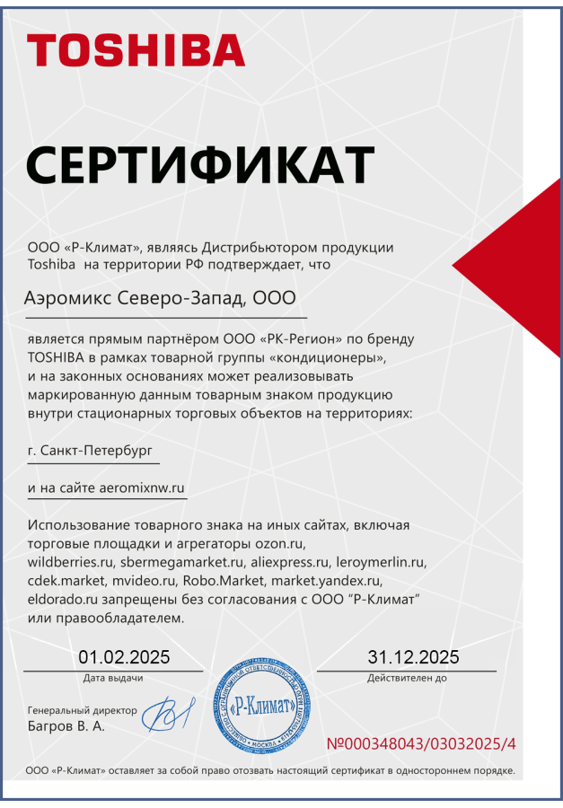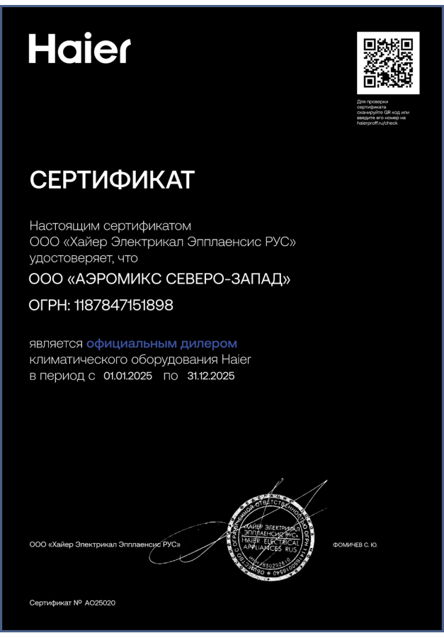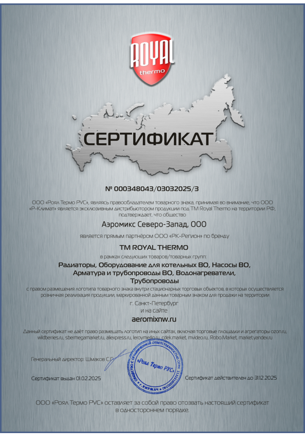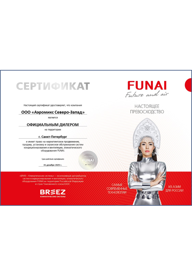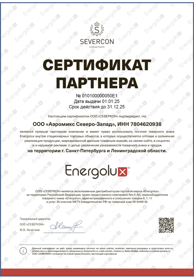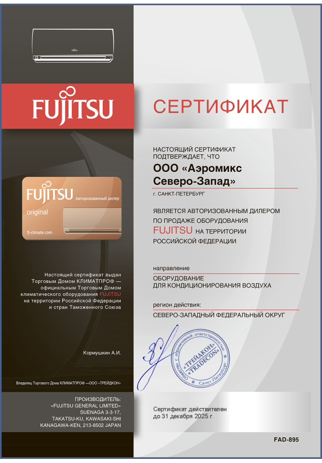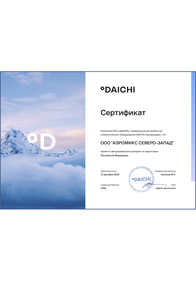 ДИЛЕРСКИЕ СЕРТИФИКАТЫ ООО "Аэромикс Северо-Запад"